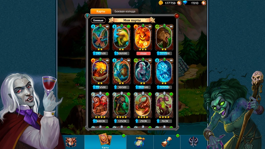 - ✅ ⚔️ Уникальная боевая система — разработчики создали собственную механику, которая отличается от классических ККИ. Здесь важны позиции на поле, порядок атаки и взаимодействие карт.